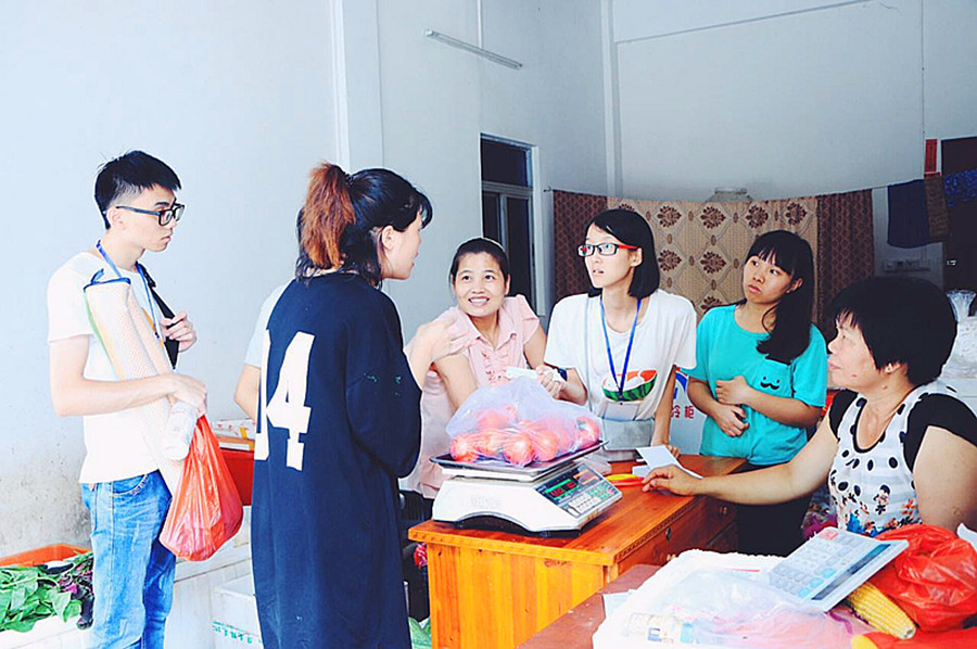 街道上,村民们都很欢迎我们的到来,记得第一天到达下乡基地已是中午,学校附近的饭店老板得知服务队下乡的目的后,他热情地说:“自己煮饭多麻烦啊,快来我这里吃吧,不要钱。” 村民热情地告诉我们,在村里即使晚上单独在外面行走都不会有危险,很安全。