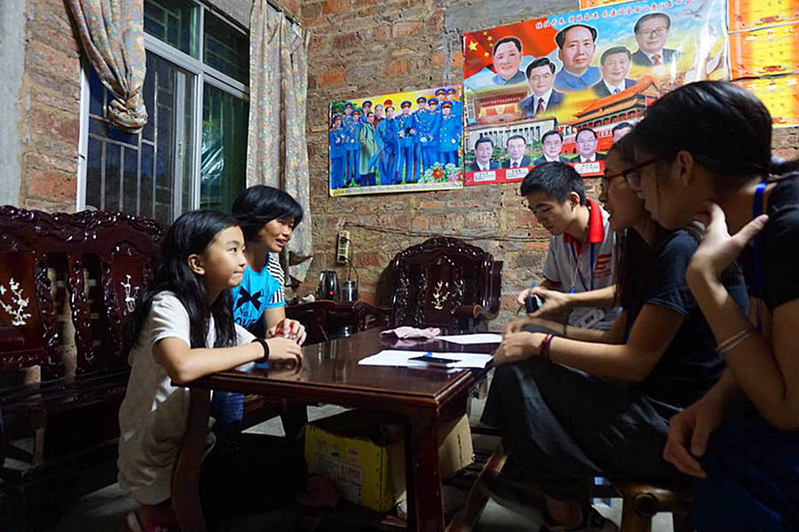 家访时,我们感受到本地人对教育的重视。登畲村的留守儿童不多,但由于家庭人口多,家长整天忙于赚钱养家,很少陪伴孩子;因为自身的文化水平较低,家长更加渴望孩子能够成才;就算家庭经济困难,也希望支持孩子顺利完成高中教育,甚至考大学。六年级(2)班学生温锦云,谈吐气质俱佳,喜欢与队员们聊文学;通过家访,其母亲介绍温锦云从小就喜爱读书,家里没有电脑,于是家里支持她把零花钱攒起来买书和借书看,目前家里客厅堆满了国内名著。