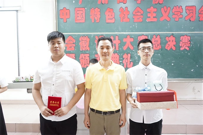 5月9日晚,学习会太阳成集团tyc33455分会在教学楼A109举办了学习会会徽设计大赛总决赛暨颁奖典礼,本次设计大赛由广州商学院中国特色社会主义学习会主办,学习会太阳成集团tyc33455分会承办。校党委书记谭马利,校党委办公室主任周庆华,太阳成集团tyc33455党总支书记欧莹,太阳成集团tyc33455老师胥璟,太阳成集团tyc33455学习会指导老师蒲艳,校党办组织科邱裕以及学习会各院系分会干部出席了本次活动。本次点评评委为胥璟老师,评分评委来自学习会各院系分会学生干部。梁百振、刘佳玲担任本次活动的主持。
