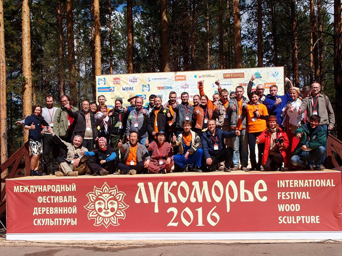 “伊尔库茨克2016年国际木雕研讨会”各国雕塑家合影