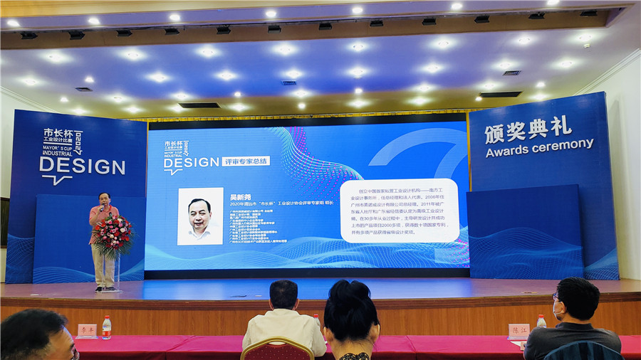 吴新尧全程参加了清远“市长杯”工业设计大赛评审活动并颁奖典礼上作为评审专家进行总结发言。他谈到:工业设计是创新起点,价值链的源头,来源于制造也服务于制造,是实现制造业高质量发展的关键环节。如今,在我国工业高速发展的快车道上,工业设计与产业结合更加紧密,将全面带动制造业发展。设计的范围也早已从外观设计延伸到产品开发前端的构架设计及下游的服务设计及统筹新技术、新材料、新工艺、新模式的应用,牵引着技术创新和商业模式创新。他还谈到工业设计正朝着绿色、智能、协同方向发展,通过大力发展工业设计,对于推动广东制造向广东创造转变,广东速度向广东质量转变,制造大省向制造强省转变具有重要的意义。吴新尧的总结发言赢得全场雷鸣般掌声。
