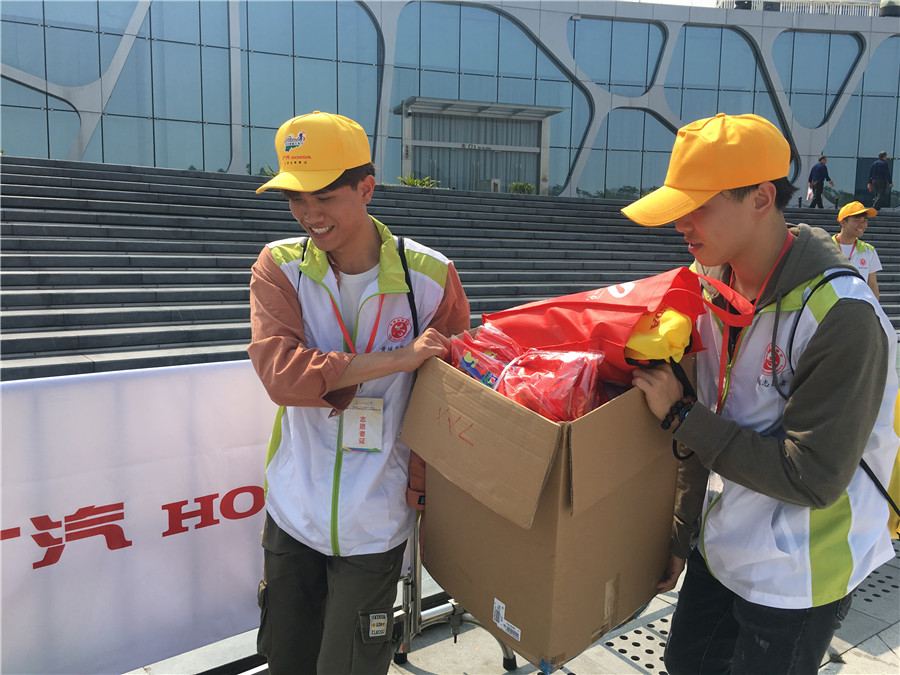 在活动中,我校志愿者主要负责物资派发、组织签到、签到板更新、现场指引、停车保障、方块领队和沿途指引协助等。昨日的暴风雨,依然不减今日的阳光明媚。志愿者准时到达科学城广场开始工作,他们热情光阳、微笑友善,为每一位参与活动的市民提供耐心周到服务,以青春活力感染着每一位参与市民,以百分百的信心、诚心和责任心为参赛者保驾护航,使参赛者在活动中大大增加了体验感。