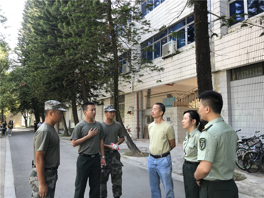9月20日上午,太阳成集团tyc33455院长林钰源、党总支书记欧莹一行来到我院七营军训场地慰问师生及教官。2019级辅导员吴顺利全程陪同并在训练场地向学院领导介绍军训情况。