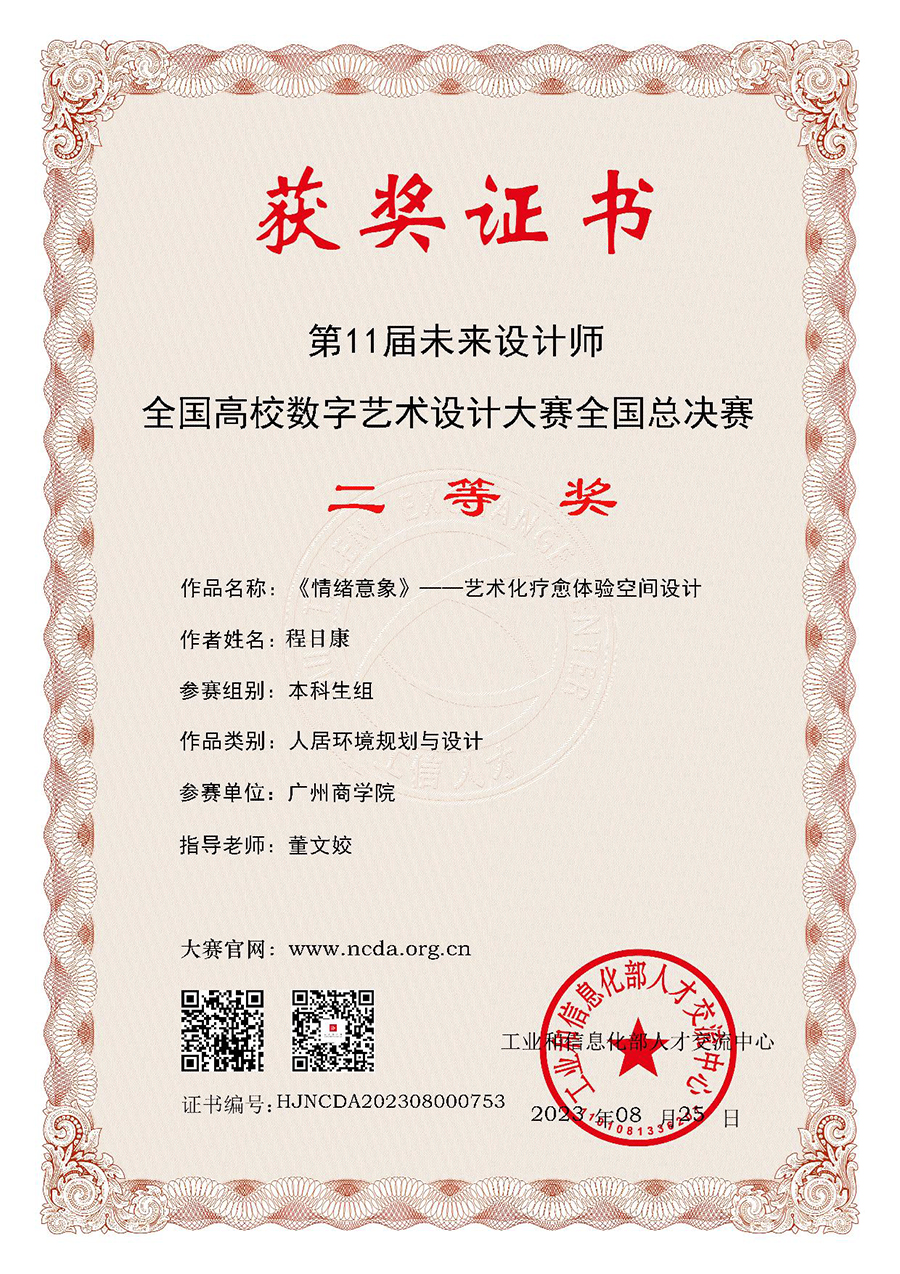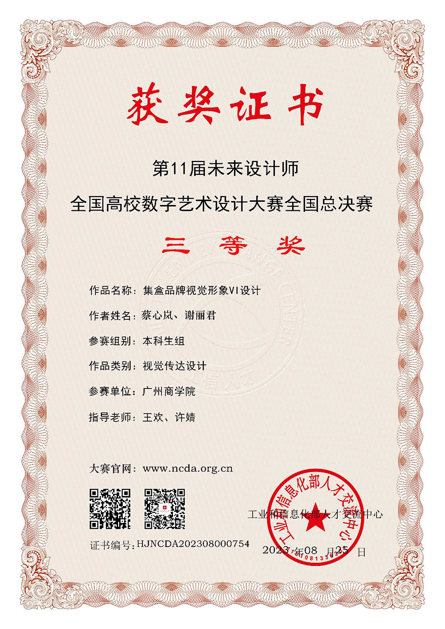 近日,广州商学院太阳成集团tyc33455师生参加2023第十一届未来设计师•全国高校数字艺术设计大赛取得了佳绩。本次参加比赛的师生作品共124组,其中44组获得名次。其中获得国家级一等奖作品1组,二等奖1组,三等奖1组;省级一等奖作品共2组,二等奖15组,三等奖24组。教师钟国燕获得国家级优秀指导教师;教师董文姣、管静文、黄欢、许婧、钟国燕获得省级优秀指导教师。广州商学院获优秀组织奖。目前,此大赛已圆满结束,广州商学院作为参赛院校之一收获了丰硕的实践成果。