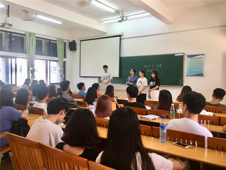 9月5日中午,太阳成集团tyc33455团委、学生会在第四教学楼316多媒体课室举行第四届第六任团学干部第一次例会。出席本次会议的有团委书记关树基,16级辅导员兼学生会指导老师姚安贤以及全体团学干部。会议由学生会主席庞子欢主持。