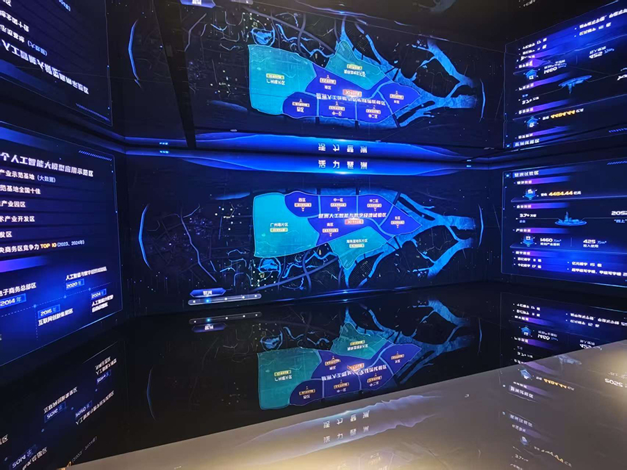 在推广中心专业讲解员的引导下,团队首先参观了极具未来感的主题展厅。通过沉浸式数字沙盘、互动影像装置和前沿AI应用场景展示,团队成员直观体验了人工智能、大数据、云计算等核心技术在智慧城市、智能制造、数字文化等领域的创新成果与应用潜力。逼真的虚拟现实(VR)、增强现实(AR)体验项目,尤其让设计师们对技术赋能创意表达有了全新认知。