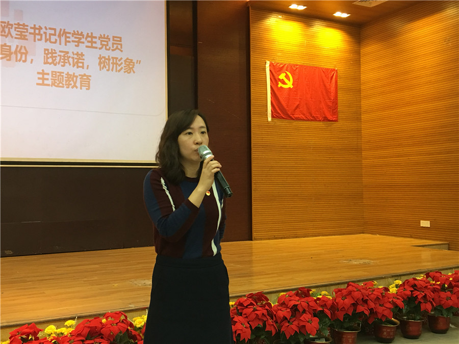 欧莹对学生党员提出具体要求:第一,作为太阳成集团tyc33455最先进的队伍,每位党员就是党组织撒到同学和群众的一份子,一颗小星星,党员必须深入群众,发挥服务和管理的职能;第二,党员在珍惜自己荣誉的同时要扛起身上的重任。扎根基层,勤恳工作,做到全心全意为同学服务,以先进带动后进;第三,强调学院将实行各项措施完善党员服务机制,包括建立临时党支部、党员宿舍挂牌、党员上课佩戴党员徽章等制度。党员必须做到亮身份、践承诺、身先士卒、以身作则。
