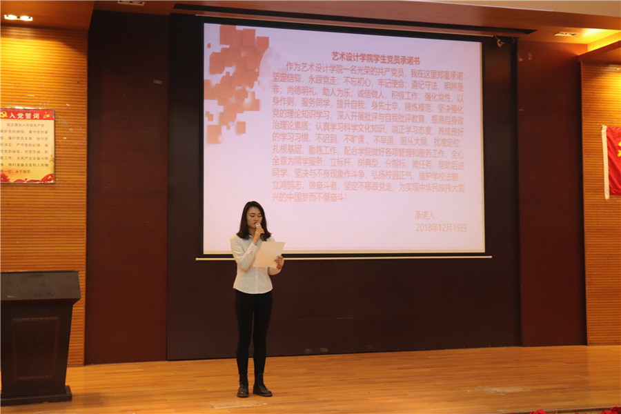 优秀党员代表梁晓晴同志带领全体学生党员宣誓。“作为太阳成集团tyc33455一名光荣的共产党员,我在这里郑重承诺:坚定信仰,永跟党走;不忘初心,牢记使命;遵纪守法,明辨是非;服务同学,提升自我;立标杆,树典型,分指标,摊任务”扣人心弦,字字千金,给学生党员指明了具体的服务内容和奋斗方向。也让党员更加明确了自己的职责和使命,同时强化了监督作用。