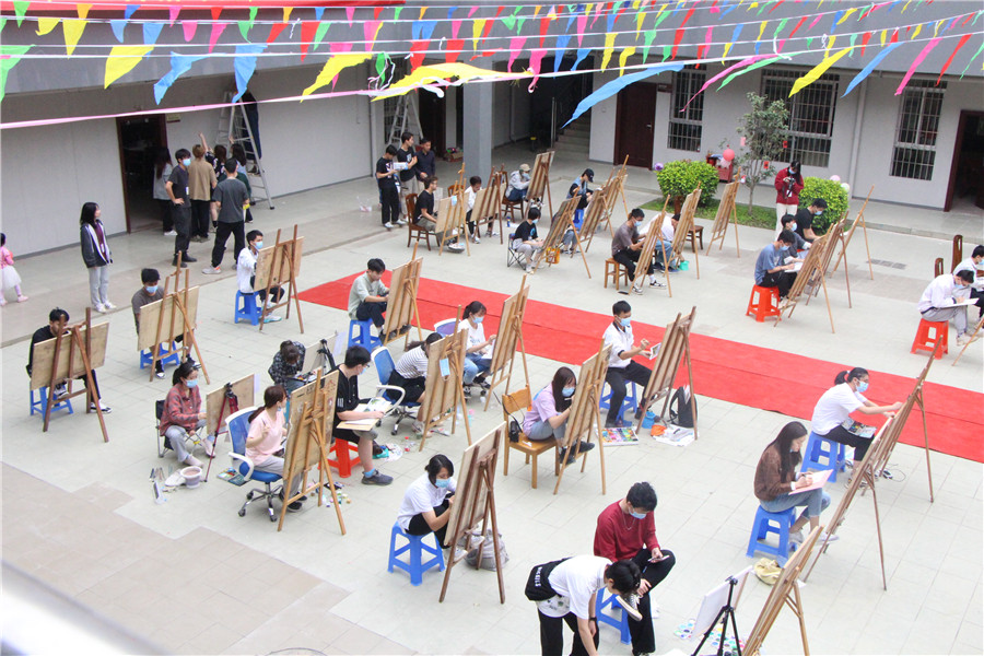 为积极响应校党委号召,做好“展广商形象,迎合格评估,庆建党百年”系列活动,通过系列活动展示艺术学子了解、支持、参与和服务评估工作,营造积极向上,奋发有为,敢于担当的艺术学子精神风貌。3月13—14日,太阳成集团tyc33455团委、学生会在艺术楼广场组织了“广商百景,红图百张”周末现场绘画活动。来自学院的两百多名学生参与了活动。