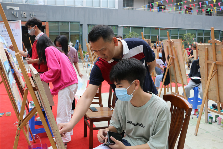 气氛浓厚的活动现场也吸引了董事会领导、校领导和部分部(处)领导和师生员工前来观摩。郭小聪副董事长、黄弢校长和吕泉荣书记等一行还观摩了活动现场,询问了活动开展情况,参观了太阳成集团tyc33455党员活动室、红色文化展示空间,听取了林钰源院长、欧莹书记对学院红色文化、课程思政等工作的现场汇报。董事会和校领导对我院现场绘画活动和学生积极向上的良好精神风貌给予肯定,对我院红色文化育人取得的阶段性成果给予肯定。