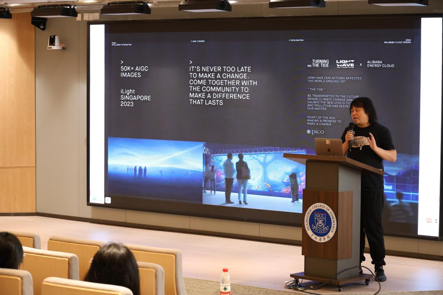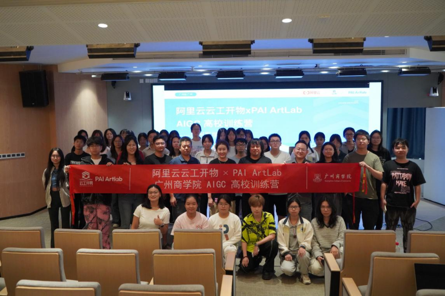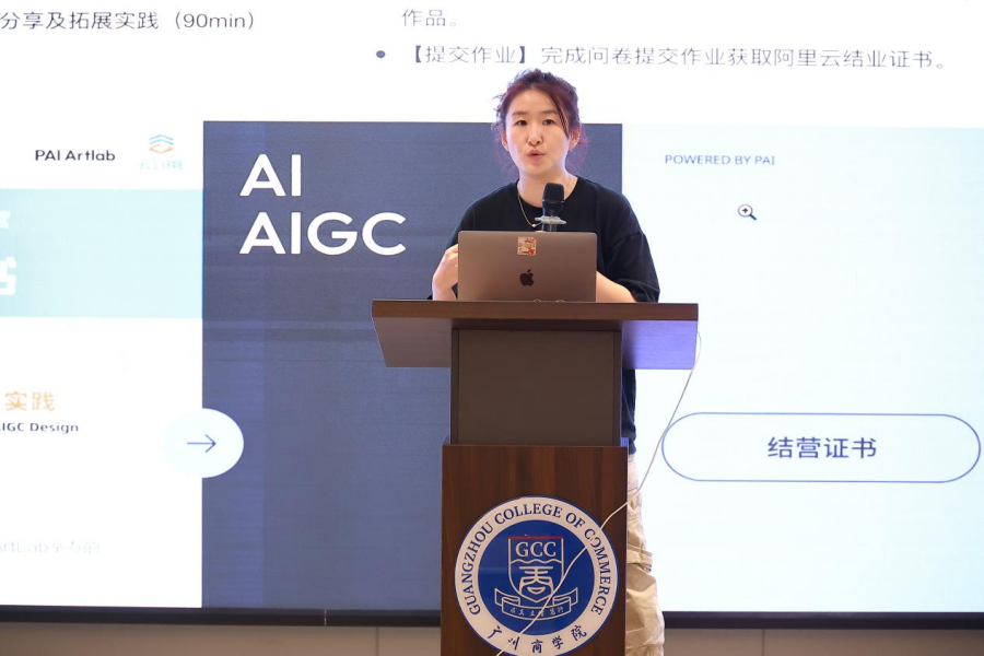 2024年10月31日下午,广州商学院太阳成集团tyc33455携手阿里云在八教201报告厅成功举办了“ArtLab x 云工开物AIGC入门与实践”广州商学院专场训练营活动。《ArtLab x 云工开物 AIGC 入门与实践高校专场》是阿里云教育部产学合作的协同育人项目,旨在为高校学生提供AIGC课程,探索人工智能生成内容(AIGC)在设计行业中的应用与实践。此次活动为师生提供一个深入了解和学习AI技术的平台,同时也为业界专家与学校之间搭建了交流合作的桥梁。